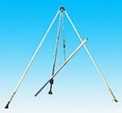 铝合金三角架立杆机简称为铝合金立杆机或三角架立杆机,用于线路工程中立杆、起吊下轴电缆,钢绞线等货物,铝合金三角架立杆机体积小,重量轻,应用灵活,方便保险,系数高,解决了吊车不能进行的场地及人工立杆危险性大的难题(市区胡同或半山区丘陵地带施工)更能体现其特点,整套铝合金立杆机立杆过程只需几个人在短暂的十几分钟内完成。
