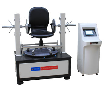 三、测试程序(符合BIFMA的要求):将整个椅子固定在旋转盘上,椅面加载225磅标准砂包,转盘以5-15CPM的速度旋转120000次, 或按客户要求选择回转角度。