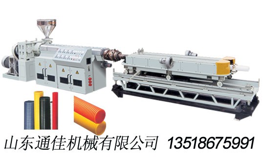 预应力波纹管生产线(13518675991)是山东通佳引进国外先进技术,结合本国实际国情,自行研制开发设计的新产品。主要以聚氯乙烯或聚乙烯为原料,生产单、双壁波纹管材,该管材因其独特的结构,具有质量轻,抗冲击性能好、耐腐蚀性强、耐寒耐热的优点,广泛应用通讯、电线电缆的铺设、桥梁钢索护套,农业灌溉、城市排(给)水、地埋渗灌及建筑上下领域。