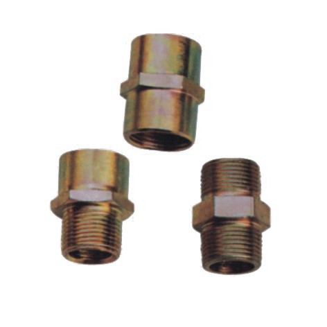 . 产品特点 Features 优质碳素钢制成,表面镀锌或采用不锈钢. 螺纹规格可特制,如NPT 螺纹,公制螺纹等. 注:标注螺纹规格时应注明内外螺纹,如 CBHJ-G3/4'(内)/G1'(外)意义为一端为 外螺纹G1'. 符合GB3836-2000,IEC60079标准要求