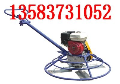地面抹光机又叫做水泥收光机,它的主要机构是一个电动机驱动的抹刀转子,在转子中部的十字架底面装有2~4片抹刀。抹刀倾斜方向与转子旋转方向一致,由电动机带动三角皮带使抹刀转子旋转。操作时,先握住操纵手柄,启动电动机,抹刀即旋转对水泥地坪进行抹光,抹光机每小时能抹光100~30m2,与人工抹光比较可提高工效3倍以上