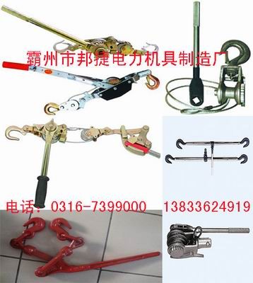 本厂专业生产电力施工工具:主要产品有多功能紧线器,张力收线器,双钩紧线器,户头紧线器,铝合金导线卡线器,绝缘导线卡线器,电缆放线架,铝合金立杆机等产品。