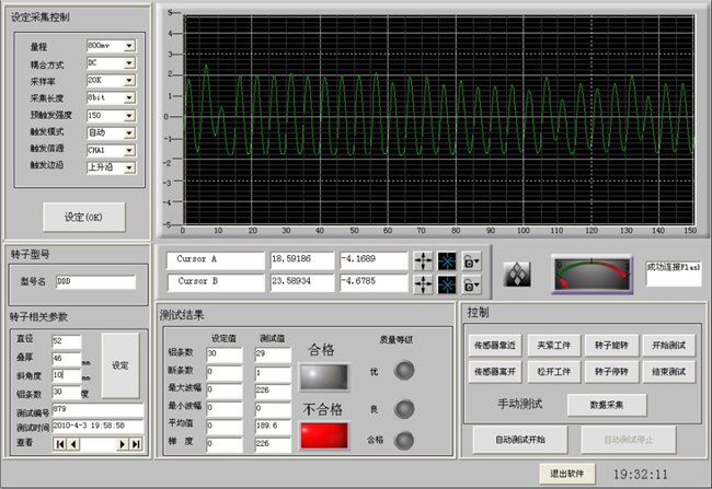 该系统可以进行自动和手动测量,自动测量用于正常的生产线测试,手动测量主要是用于调整工装位置、判定系统故障,采集和设置系统参数。