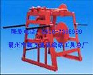 QYGJ-001型手摇绞磨用于线路工程中收紧导线作业,人力摇动丝杠,主要适用于井口施工,最大负荷1.5吨,整机重量在55KG左右,特殊规格型号可定做,又称为人力绞磨机。 手摇绞磨使用时首先将手摇绞磨固定在地面上,手摇驱动,进行收放线、牵引。