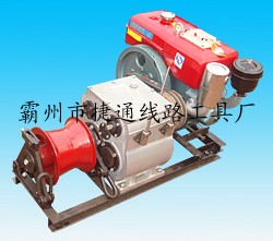 2.结构与工作原理 1、动力 3T柴油 功率:4马力 转速:2600转/分 5T柴油 功率:8马力 转速:2600转/分 2、传动方式及变速: 动力与变速齿轮箱3T,A型三角皮带两根,5T两根B型三角皮带传动,并装有传动离合器。 3、制动 有自动夹刹及离合传动连锁刹两种制动装置,在正、反方向均起制动作用。 4、手摇装置: 绞磨机在工作过程中,若遇原发动机发生故障,被吊物在不上不下的情况下,可拨动手摇装置,将被吊物继续吊起或放回地面。 5、润滑方法 变速齿轮箱内各机件渗润,外轴承用黄油。