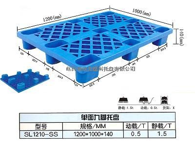 塑料托盘(1210) 规格 :1200*1000*140毫米 动载: 500千克 静载: 1000千克 重量: 7.8千克 临沂市双龙塑料有限公司能够生产170多种规格的塑料托盘:有货架系列,标准系列,超轻系列。我厂自行研制开发置钢管技术、发泡技术、防滑条技术运用于塑料托盘等产品,填补了国内空白,并获得几十项国家级专利。现在年生产塑料托盘百万块以上。我们的托盘具有质轻、平稳、美观、整体性好、无钉无刺、无味无毒、耐酸、耐碱、耐腐蚀,易冲洗消毒、不腐烂、不助燃、无静电火花、耐高温、耐低温、可回收等优点。公司本着“以产品质量和顾客满意求生存、求发展、求效益”的宗旨,在激烈的市场竞争中,不断创新,不断发展壮大,已经充分赢得了广大客户的信赖。 欢迎广大国内外商前来洽谈,合作投资!