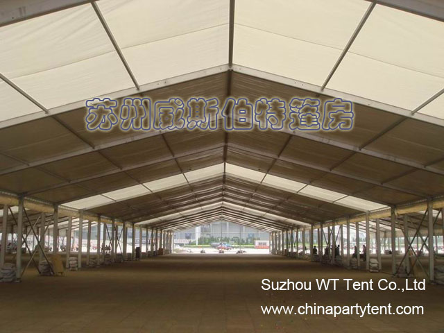 4、坡顶篷(篷房):这是最主要的一类,也是国内租赁最多的,其结构也叫铝合金框架组合式篷房。