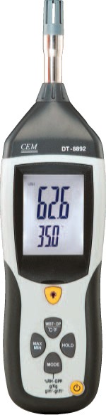 8892系列专业温湿度计具有空气温度、湿度、露点温度、湿球温度测量等功能,其中8896温湿度仪还具有红外温度及K型温度测量功能,内置的USB接口可将数据快速、及时地传送到电脑(仅限8896)。