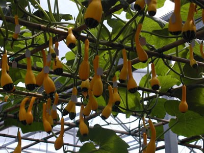 (6)桔瓜。该品种长势旺盛,抗热性强,栽培容易。果实重约200~300克。皮色淡黄橙色,带橙色纵条纹。肉质粉质,有独特的甜味。雌花率高,单蔓可连续着果3~4个。播种后80~90天即可收获。储藏性极佳,常温下可保存2~3月,也可做装饰用。