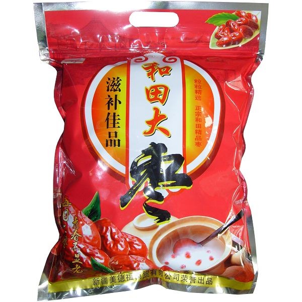 美德福和田大枣粒粒精选,纯天然绿色有机食品是您馈赠亲朋好友之极品。 红枣是我国民间传统的药物之一,据明代李时珍的《本草纲目》记载:“干枣润心肺、止咳、补五脏、治虚损,除肠胃癖气。”“大枣味甘无毒、主心邪气、安中养脾、平胃气、通九窍,助十二经。”果实为缓和强壮剂,常用为滋药,治泻痢、调营工、疗寒热、治阳痿、贫血、脾虚泄泻、心悸、失眠、盗汗、血小板减少性紫癜等症;树皮性强无毒,收敛性强,止血、祛湿,能治腹泻,刀伤止血,气管炎、肠炎、痢疾、崩漏等症。具有抗病,抗癌,保肝,提神,补血益气,润肺生津,养胃健脾,养颜驻容的作用。俗话说:“一日吃三枣,一生不显老。”言之不无道理。可鲜食、又可煮食、做枣泥、枣羹等,特别是做八宝饭、煮稀饭,味道更美。和田大枣亦能入药,中药称“白益红”,有“主治心腹邪气、安中养脾、平胃、通九窍、久服轻身延年”之功能。另外还含有药用价值的月桂酸、豆冠稀酸和油酸、花生酸、亚麻酸等,具有补脾益气,润肺生津,养颜驻容,延年益寿之功效。