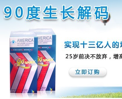 身高对一个人的升学、就业、择偶等都起到关键性的作用,“如何增高”这是身材矮小者一直以来的梦想。2006年,中国青少年健康协会引进美国90度生长解码,并推荐其为中国增高第一品牌,有效帮助青少年实现快速长高的梦想。我们一起来看下它是如何实现人体快速长高的:1、促进软骨细胞分裂:服用90度增高药全身通畅舒展,四肢有伸拉感,软骨细胞纵向分裂数量增多,启动“纵向生长”突破遗传因素身高局限。2.提高生长激素分泌:内含生物活性助长生物素,直接作用脑垂体,快速激活生长激素的分泌,帮助人体神经传递,延缓骨骺线的闭合期。3.全面激活生长因子:激活生长因子,不断产生骨原转化酶,再形成生长骨原。只需5瓶,即可实现3-10CM的快速长高。