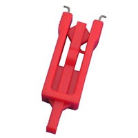 WELKEN微型断路器锁具由尼龙塑料制成,在锁具的前方有两个分别向左右两侧90度弯曲的金属钩,用于插入断路器开关柄两侧中心孔,适用时将金属钩插入断路器中心孔中后,将断路器中间顶杆向上推到顶端,从而将断路器锁定,然后上锁。(微型断路器可以锁开、锁关)