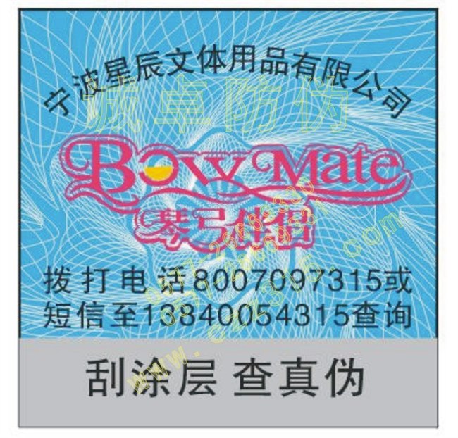 经营范围:激光防伪商标、电码防伪商标、光聚合物全息防伪标、纹理防伪印刷、全息对位烫印、包装防伪、不干胶防伪印刷、防伪吊卡、印刷油墨技术防伪、刮刮卡、安全线防伪、揭开留字防伪印刷、刮刮油墨防伪标签、三维立体防伪、凹版纹理防伪标签、温变防伪、防窜货电码防伪商标……