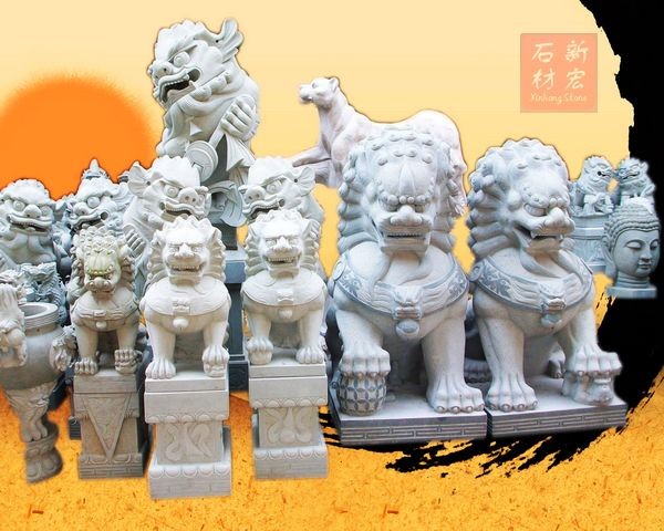 中国人历来把石狮子视为吉祥之物。在中国众多的园林名胜中。各种造型的石狮子随处可见。古代的官衙庙堂、豪门巨宅大门前,都摆放一对石狮子用以镇宅护卫。直到现代,许多建筑物大门前,还有这种安放石狮子镇宅护院的遗风不泯。