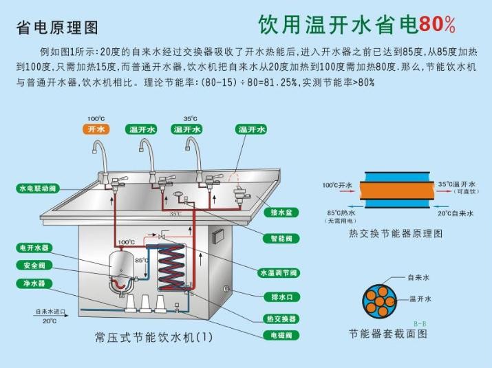 ★省电:采用热交换技术,饮用温开水省电80%。采用加厚保温层,保温效果好。