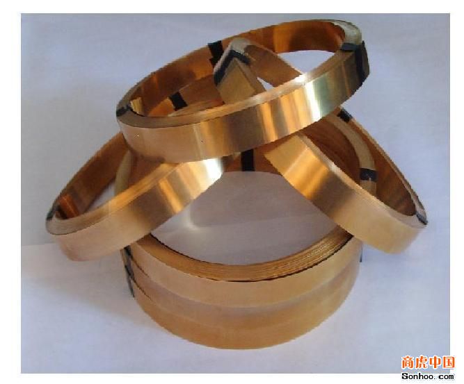 黄铜(青铜),黄铜是主要由铜和锌形成的合金,其性质取决于铜和锌的比例。含铜达63%以上的黄铜,可以冷加工,可以退火,有延展性;而含铜较少、含锌较多的合金,则应热加工,强度较高。1,国标黄铜带H90(日标黄铜带C2200):含铜量90%,又称金奖黄铜。具有细致光泽、良好加工性、伸抽性、防蚀性。不易时效破裂,可应用于建筑材料、个人随身配件、化妆品配件、热水器水箱、喇叭锁、拉链头、汽车灯帽。2,国标黄铜带H70(日标黄铜带C2600):含铜量70%。具有良好光泽、加工性、延展性、适合伸抽,易于电镀或涂装。可应用于深伸抽加工,如喇叭锁、电子零件、汽车水箱、铜管。3,国标黄铜带H68(日标黄铜带C2620):含铜量68%,又称弹壳黄铜。延展性,可焊性,深冲性,可镀性,耐蚀性能均佳,应用于各种复杂冷深冲件,散热器壳等。4,国标黄铜带H65(日标黄铜带C2680):含铜量65%,又称日用黄铜。具有漂亮色泽、加工性、延展性、伸抽性良好,易于电镀或涂装,焊接性佳,更富耐蚀性。可应于汽车水箱管,摁扣、照相机、散热片等。5,国标黄铜带H63(日标黄铜带C2720):含铜量63%,又称日用黄铜。具有良好的加工性,延展性,深冲性能好,可应于浅伸抽铭牌,证章。6,国标黄铜带H62(日标黄铜带C2800):含铜量62%,又称日用黄铜。适用于电器,电子,灯饰,五金、装横、开关、垫圈、垫片、电池接触片,铜钮扣,手表带,装饰性项链、手链、戒指等铜制品。产品参数:产品状态:M(软)、Y4(1/4硬)、Y2(1/2硬)、Y(硬)、T(特硬)等各种状态。产品厚度:0.05—2.0mm(公差:±0.005--±0.02mm)。产品宽度:10—495mm(公差:±0.05mm)。执行标准:GB/T 2059-2000铜及铜合金带材。认证体系:ISO9001-2000质量认证、SGS绿色环保认证标准。