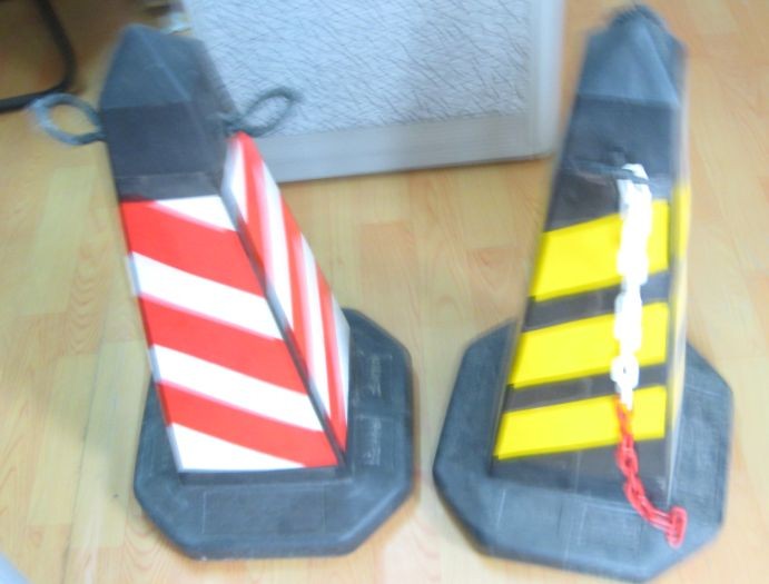 3、根据用户的要求制成各种颜色,并配以高反光材料,白天红色醒目明显,晚上白色的反光材料能反射出耀眼的光芒驾 驶者一目了然。