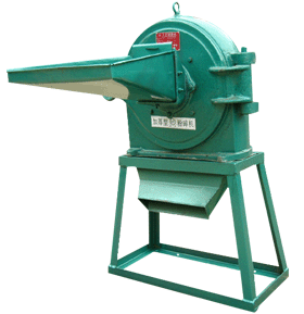 工作原理:该机是切向进料锤片式粉碎机。在粉碎室中,转子高速旋转,饲料通过锤片的打击和齿板的摩擦作用而粉碎成细粒,从筛孔中漏下,然后有离心式风机吸送至储料袋或集料室。