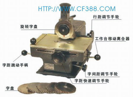 经高频淬火热处理的合金钢转字盘在外力作用下(用手压或橡皮锤砸),在金属标牌上刻印出有一定深度(0.1~0.3mm深)的字母或数字;