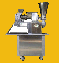 2、普通饺子机:设计落后,不适应现代市场要求,主要表现为:a、包出的饺子皮厚馅少,外形不美观;b、成形系统没有经防粘结处理,饺子易粘连破损;c、面缸温度过高,面皮被糊化,口感差;