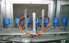 3.喷台区装有自动系统,当产品走到喷涂位置时,自动驱动工作,带动自转具上的小齿轮360转动。然后自动喷枪对准产品进行 喷 涂,喷枪采用进口喷枪,静电发生器回收粉末效率高。