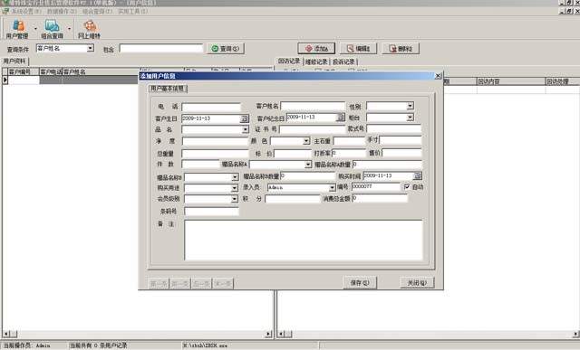 维特珠宝行业管理软件,是一套专门针对珠宝行业售后部门的计算机管理软件。可适用于任何珠宝企业,主要提供给售后服务部门使用,售后服务人员通过软件可实现客户户信息管理、回访记录管理、用户维修记录管理、投诉记录管理、销售管理、报表打印管理。其他功能:用户权限管理,数据库备份与恢复,用户信息组合查询,其他项目管理等功能。软件操作简单方便,界面美观大方,专门针对中小珠宝行业客户管理而精心设计。科学的管理方法会给您带来无限的效益。