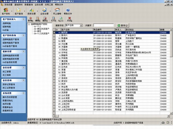 维特电脑公司客户售后管理软件是专门为电脑企业、电脑销售企业或公司提供电脑售后服务管理的专业系统。在电脑服务、电脑销售行业中,售后服务是必不可少的,一个公司的售后服务好坏直接影响到该公司在客户眼中的信誉程度。维特电脑售后服务管理软件为您的售后服务提供一个科学、高效的管理工具,维特电脑售后服务管理软件包含:客户录入、客户查询,报修处理,派工管理,返工销单,报修记录查询,派工记录查询,返工销单统计,返修记录,操作员权限管理,数据初始化,选项设置,数据库备份,数据库恢复.报表设置.