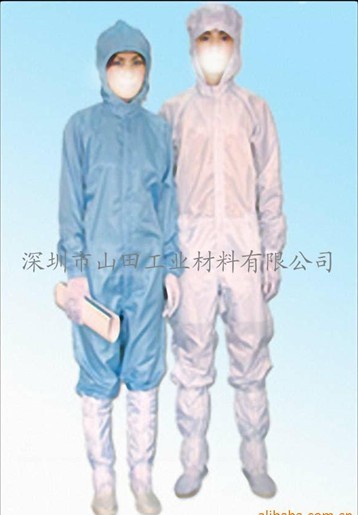 防静电洁净服、净化服,采用超细聚脂涤纶长纤维与进口有机复合导电纤维,以先进织造工艺生的的防静电洁净面料,表面光滑,无纤维脱落,主要用于电子、医药厂、彩管、半导体、精密机械、塑胶、喷漆、医院、环保等洁净车间,净化室无尘室内穿用,具有洁净、防静电、耐穿,可高温消毒、可反复洗洁等功能,分连体服和分体服两类。