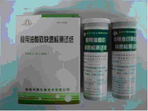 酸价过氧化值速测试纸利用食用油脂酸败所产生的游离脂肪酸或食用油脂氧化所产生的过氧化物与试纸中的药剂发生显色反应,以此反应出油脂酸败或油脂被氧化的程度。