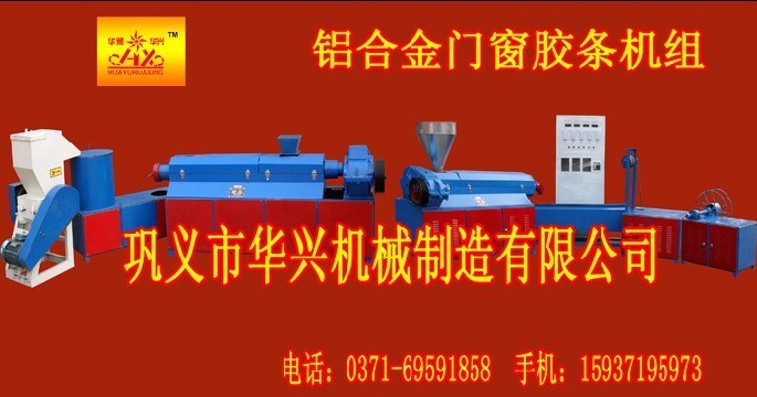 河南省华兴机械制造有限公司研究生产塑钢铝合金门窗胶条机该机具有能耗低,效率高、操作简便、自动化程度高等优点,操作时可根据用户需求、更换模具,可生产不同形状的铝合金门窗胶条,汽车用胶条、塑料钢门窗胶条等产品,本厂上门安装调试,提供配方,包教技术。,主要设备由塑料破碎机—塑料混料机—塑料造粒机—自动控温板-挤出机-水箱-压延机自动调速-收卷机等部分组成的,操作时可根据用户需要更换模具,可生产出不同形状的铝合金门窗胶条,动力为7.5千瓦,产量为50-150公斤/小时,该机具有能耗低,效率高,操作简便,自动化程度高等特点,是您最理想的塑料机械设备。铝合金门窗胶条机,铝塑门窗胶条机,塑料门窗胶条机,门窗胶条机,胶条机