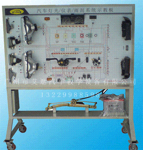 1.真实可运行的整车电器系统,充分展示整车电器系统的组成结构。2.接通电源,操纵示教板上的各种电器开关、按纽,可真实演示汽车灯光系统、仪表系统、点火系统、起动系统、充电系统、发动机防盗系统、喇叭系统、电动车窗系统、电动门锁、雨刮系统、音响系统等汽车电器各系统的工作过程。3.示教板面板上绘有彩色喷绘电路图,学员可直观对照电路图和实物,认识和分析整车电器各系统的工作原理。4.示教板面板上安装有检测端子,可直接在面板上检测整车电器各系统电路元件的电信号,如电阻、电压、电流、频率、波形信号等。5.示教板上安装有诊断座,可连接专用或通用型汽车解码器,对发动机控制单元、组合仪表、舒适系统单元等进行ECU编码查询、读取故障码、清除故障码、读取数据流、执行元件测试、参数设定、波形分析等自诊断功能(根据原车配置略有调整)。