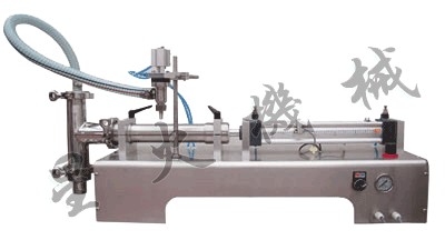 该机为半自动活塞式液体灌装机。