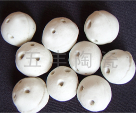开孔瓷球是根据填料的传质效果和介质,通过对填料层流体特性的研究,在惰性瓷球的基础上通过外形改造设计制成的一种新型支承、覆盖用球形填料。其主要原理为:采用刚玉和莫来石为产品主晶相,以长石玻璃和高岭土烧结体为结构桥梁,利用了氧化铝烧结体刚玉和莫来石晶体的高机械强度、耐高温、耐急冷急热特性、抗氧化、耐磨损、极低的化学活性、耐强酸碱腐蚀等。