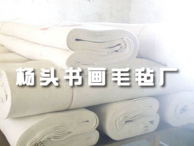 我厂主要生产纯毛。混纺。化纤三大系列产品,纯毛书画毡,以优质纯毛为原料,毡面平整细腻,柔软耐用,手感舒适,混纺书画毡,经济实惠,书画皆宜,是学生习作和创作的良好产品。化纤毡宽度1-2.5米,长度无限,可任意剪裁, 洁白均匀,成卷生产。总之我厂生产的书画毛毡,在作品墨多时,不会跑墨,有托墨的作用,又因羊毛可吸烘水分,又具有吸墨作用,大大体现了脱水保墨的作用,特别是绘制国画能妙笔生花。