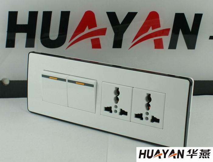 1.产品设计特点:开关面板结合现代时尚潮流,采用大圆弧设计、产品外观简洁大方,面板一周采用钳入黑边装饰,款式新颖、外型美观。