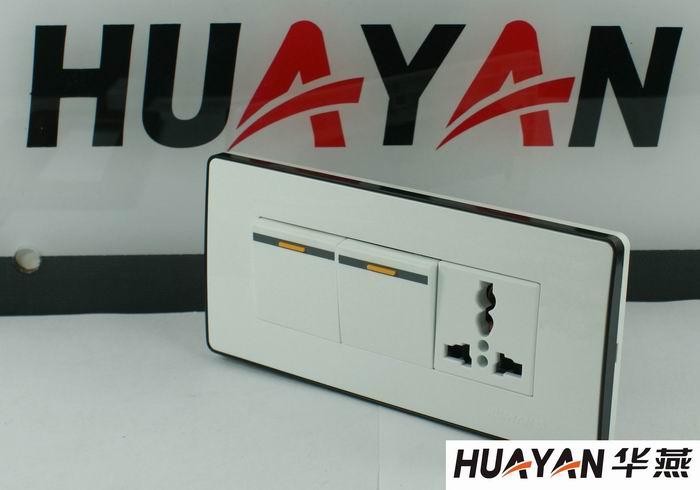 1.产品设计特点:开关面板结合现代时尚潮流,采用大圆弧设计、产品外观简洁大方,面板一周采用钳入黑边装饰,款式新颖、外型美观。