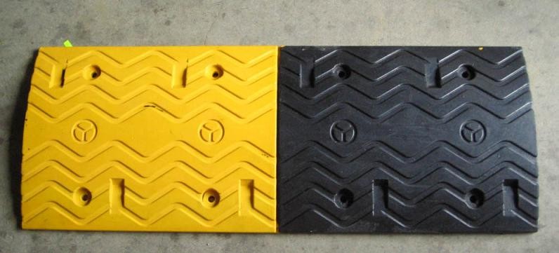 材质:由高强度橡胶制成,橡胶减速带减震性、抗压性极好,寿命长,对车磨损少,噪音少,颜色为醒目的黄黑相间,色彩分明,无论在白天或夜晚都具有高度可视性。