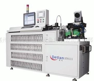 DT8111全自动分光分色机是得天自动化设备所最新研发的Lamp LED自动测试分类机台,其采用先进的技术及稳定的传动机构,使整机分类品质大大提升。配合本公司的DT8000型光电特性测试仪更能达到测试结果和性能。DT8111采用高速稳定的控制器作为控制系统,WEINVIEW触摸屏作为人机交互接口,即时监控机台分料状态,红、黄、绿三色指示灯显示机台动作状态。DT8111可与测试仪器连线,并根据测试仪器读取之信号自动将LED迅速准确的分送到各级分料料盒,并可依使用者之需求更换治具测试不同规格之材料及设定计数条件。