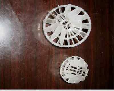 采用聚丙烯塑料制成球状,在球中部沿整个周 长 有一道加固环,环的上下各有十二片球瓣,沿中心轴呈放射形布置。