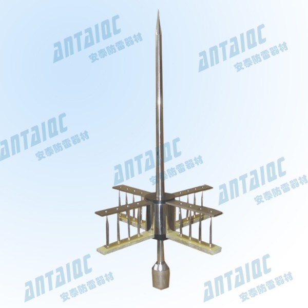 避雷针的中央收集杆和激发器之间的电场迅速增加而造成尖端产生的空气离子化可于极短及准确的时间内放电,因大量电离子的存在,从而使自然的效应减低,产生一预期上行放电通道,可迅速/安全地将雷电截击及安全地泄放到大地。