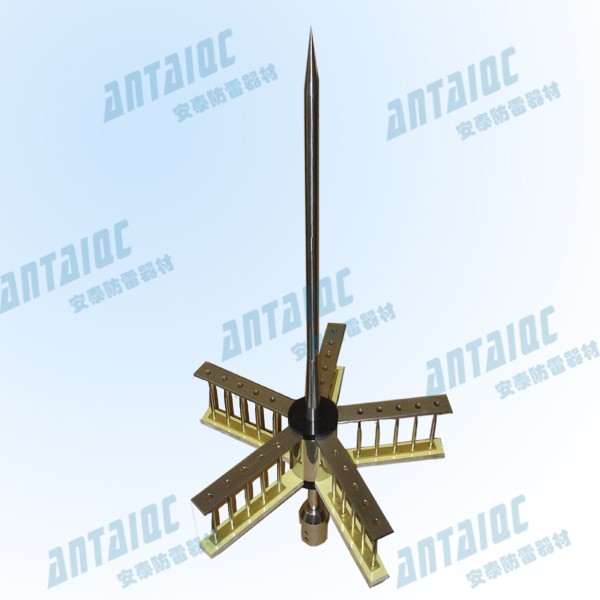 避雷针的中央收集杆和激发器之间的电场迅速增加而造成尖端产生的空气离子化可于极短及准确的时间内放电,因大量电离子的存在,从而使自然的效应减低,产生一预期上行放电通道,可迅速/安全地将雷电截击及安全地泄放到大地。