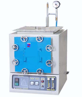 KBF11Q-B气氛箱式炉以瑞典康泰尔电阻丝为加热元件,采用双层壳体结构和日本岛电40段程序控温系统,移相触发、可控硅控制,炉膛采用氧化铝多晶体纤维材料,双层炉壳间配有风冷系统,能快速升降温,20分钟内能达到1000度,采用不锈钢内胆,内胆直接密封,可以预先抽真空、盖板密封采用硅胶泥、炉门采用硅胶垫并通有水冷系统,气体经过流量计后由后膛进出,出气口处有燃烧嘴,可以通氢气、氩气、氮气、氧气、一氧化碳、氨分解气等气体,该炉具有温场均衡、表面温度低、升降温度速率快、节能、炉膛干净不易受污染等优点,是高校、科研院所、工矿企业做气氛保护烧结、气氛还原用、脱脂用的理想产品.型号规格:
