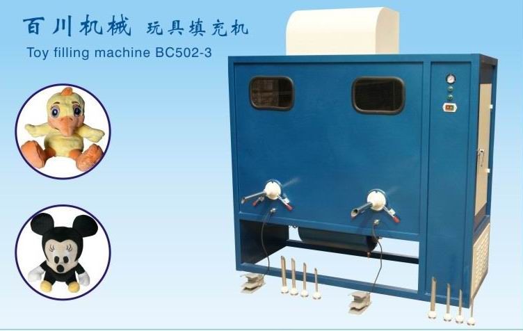 4.填充速度及填充量随意调节,可卸式多型号冲棉管(直经50--10mm),满足不同大小玩具的冲棉需要。