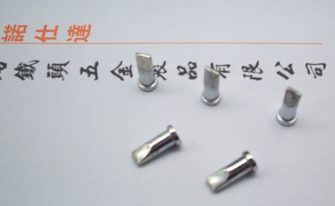 我们供烙铁头专业生产内外热式烙铁头,采用进口无氧铜原材料,外型使用特殊成型机器加工,尺寸精准;无铅合金铁电镀层密实,使用寿命特长;产品表层使用特殊材料处理,尖端镀锡处理,确保本体不因高温而变黑;我司长期供应生产白光900M系列烙铁头、高千穗SS和SA系列烙铁头、威乐ET和LT系列烙铁头、JBC烙铁头、PLATO烙铁头、快克200系列烙铁头