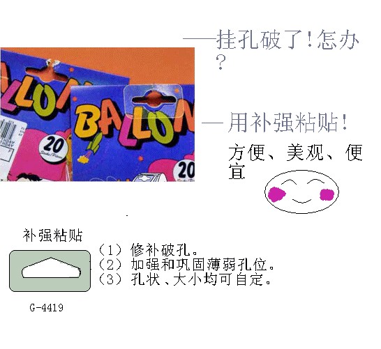 本公司主要经营各类自粘PVC,PET胶粘挂勾,飞机孔挂勾,胶粘挂钩PVC、PET为原材料,其粘性很强,在悬挂产品时不仅可以达到一目了然的效果,而且可以降低包装成本。产品厚度有0.14,0.24,0.3,0.35,0.4,0.5可供客户选择,并且可以根据客户的要求生产。
