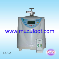 高级动态负离子熏蒸机,高级LED彩屏显示装置,八级温度调节,带超薄遥控器。额定功率800W 和额定电压220V,配合各种蒸汽木桶或者其他蒸汽箱使用,能促进脚部及身体血液循环,改善足部痛症和舒缓身心疲劳,调节内分泌、加快身体新陈代谢。 结合其他熏蒸药物使用,效果更理想!利用先进的电离技术,采用能承受1500℃高温下不会破裂的石英灯管,释放出波长为185 纳米的光波,在这种光波的作用下能使普通的水蒸汽分解成极为微小的粒子,而纳米离子蒸汽粒子仅为一般蒸汽的五千分之一。