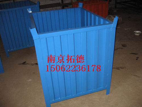 钢制料箱是在平托盘基础上发展起来的,多用于散件或散状物料的集装;料箱(钢制料箱)一般下部可叉装,上部可吊装,并可进行码垛(一般为三--四层);料箱(钢制料箱)有固定式、可拆式或折叠式三种结构和板式、格式、网式三种形式。 料箱(钢制料箱)具有承载能力强、耐用等优点。