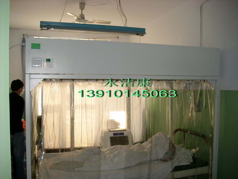2. 可移动(装有万向角轮)洁净空间,保证病床内百级,床外病房内相对高洁净度,更有利病人防止感染;