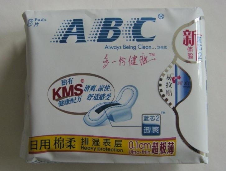 A67 ABC减翼简易日用超极薄倍柔干爽网面卫生巾8片240MM 3.2元