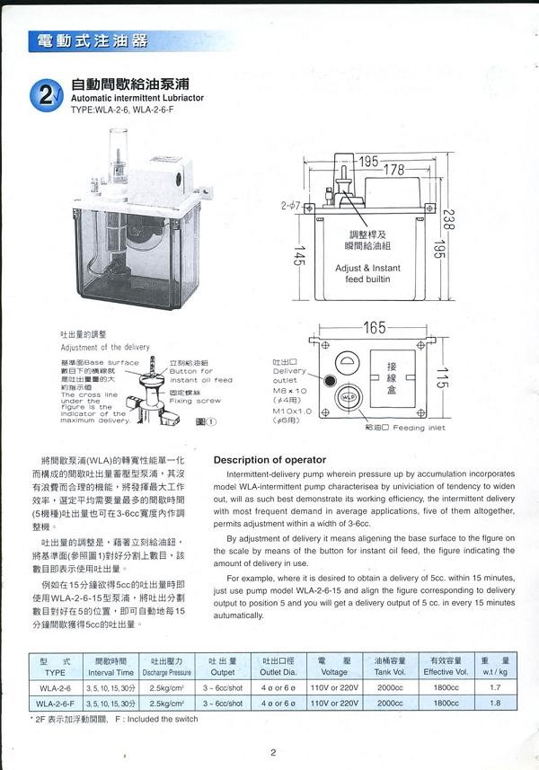 供应维良WLA电动给油泵浦WLA-2-6,WLA-2-6-F 详细信息